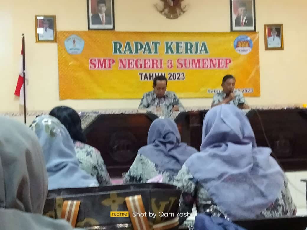 Sabtu, 15 Juli 2023 – SMPN 3 Sumenep, salah satu sekolah menengah pertama yang terletak di Sumenep, Jawa Timur, telah mengadakan rapat kerja (raker) sebagai persiapan menyambut tahun pelajaran baru. Rapat ini diadakan dengan tujuan untuk mengevaluasi program yang telah dilakukan selama satu tahun terakhir serta merencanakan program-program yang akan dilaksanakan dalam satu tahun ke depan.