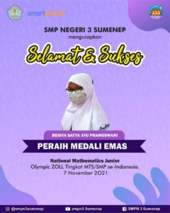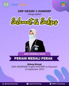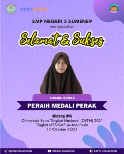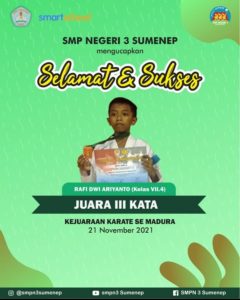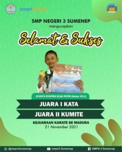 Siswa kelas 8 ini berhasil meraih Juara II Cabor Karate Putri pada ajang Kompetisi Olahraga Siswa Nasional (KOSN) Tingkat Kabupaten dan mewakili Kabupaten Sumenep pada Kompetisi serupa tingkat Provinsi.