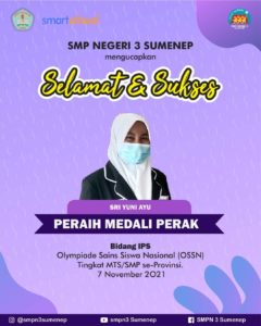 Pada tahun Pelajaran 2021/2022 SMPN 3 Sumenep semakin membuktikan eksistensinya sebagai Sekolah Berprestasi. Sekolah yang mengusung konsep SMARTSCHOOL sejak tahun pelajaran 2019/2020 ini mampu meraih sederetan prestasi baik di bidang akademik maupun non akademik. Dalam suasana Pandemi Covid-19 saat ini, siswa SMPN 3 Sumenep tetap bersemangat untuk belajar dan meraih prestasi setinggi-tingginya. Para guru di sekolah ini senantiasa memotivasi siswanya untuk tidak menyerah kepada keadaan. Di samping belajar di kelas, siswa-siswinya dimotivasi untuk berkompetisi baik di tingkat regional maupun nasional. Hal ini tentu sangat positif dalam upaya menanamkan kepercayaan diri siswa serta mengukur tingkat ketercapaian dan daya serap siswa terhadap materi pelajaran yang telah diterimanya di sekolah.