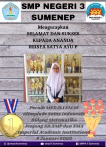 Tidak mau berhenti untuk berprestasi, di awal tahun 2022 ini dalam Olimpiade Sains Indonesia ananda Reisya kembali mempersembahkan 1 Medali Emas Tingkat Nasional di bidang Matematika.